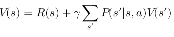 현재 위치의 가치는? = 지금 당장 받는 보상 + (다음 위치들의 가치 × 확률 × 할인율)