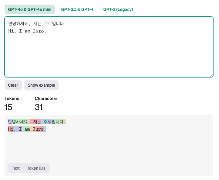 아래에서 우리의 텍스트가 어떻게 토큰화 되는지 확인할 수 있습니다.